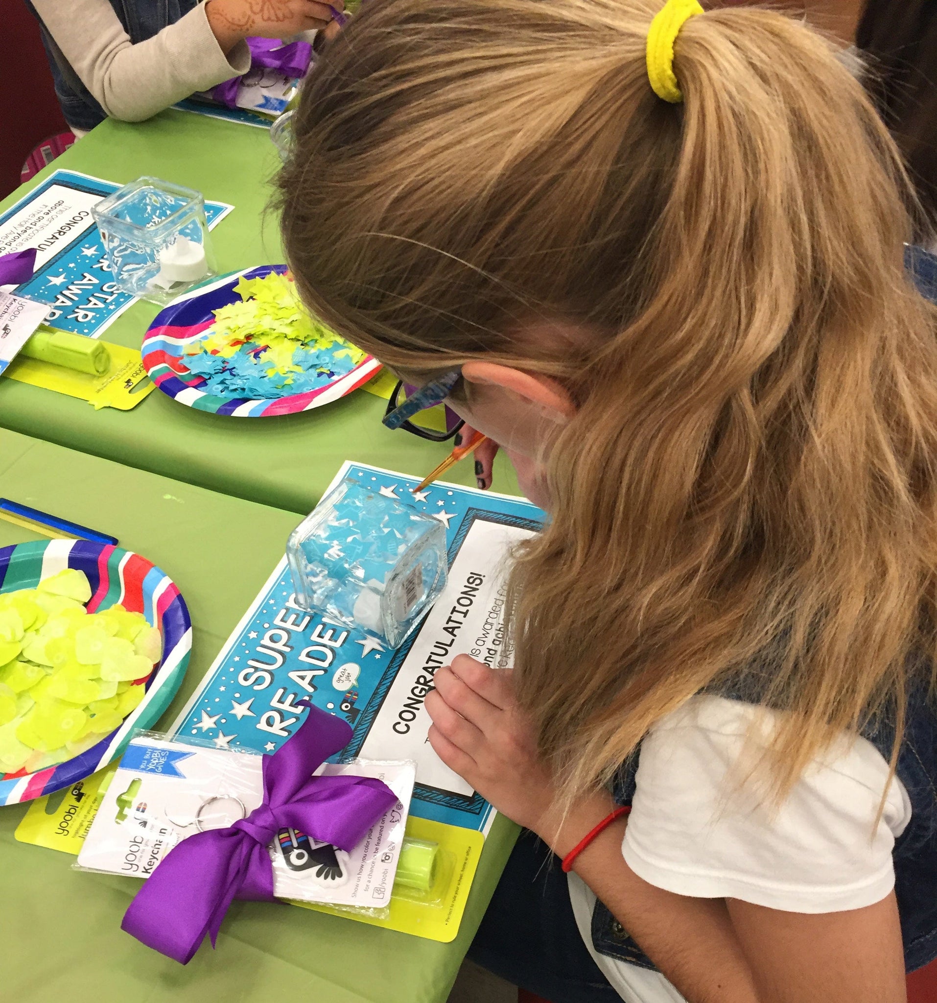 Yoobi loves encouraging all things education, so in January, Yoobi teamed up with Holly Avenue Elementary school PTA to help celebrate some awesome kids in the community. Holly Elementary held a Read-a-thon at their school – a fun competition that encouraged students to read and log the books they had been reading. Knowing this, Yoobi donated an in-store DIY party to the top fifteen Holly Ave Read-a-thon students to congratulate them on a job well done!