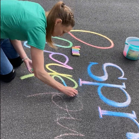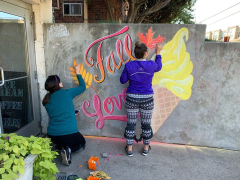 There is a connection to the community with chalk that doesn't happen with other forms of art. People are drawn to the colors on the pavement. They want to see what it says. They want to know what I've created this time around, and they're usually anxious to see what I'll create next time. I have seen people walk out of their way to look at my chalk art. Occasionally, they'll even snap a photo. It has been shared on social media. Delivery drivers will sometimes avoid driving over it to preserve the chalk just a little longer. I've watched kids play on top of my art and try to pick out letters that they know. Chalk can bring smiles and wonder and excitement to an entire community, whereas other art is often only seen in pictures. I've never had a small child dance on my other art, but I have witnessed the coolest dance moves happen on top of my chalk. It's just amazing.