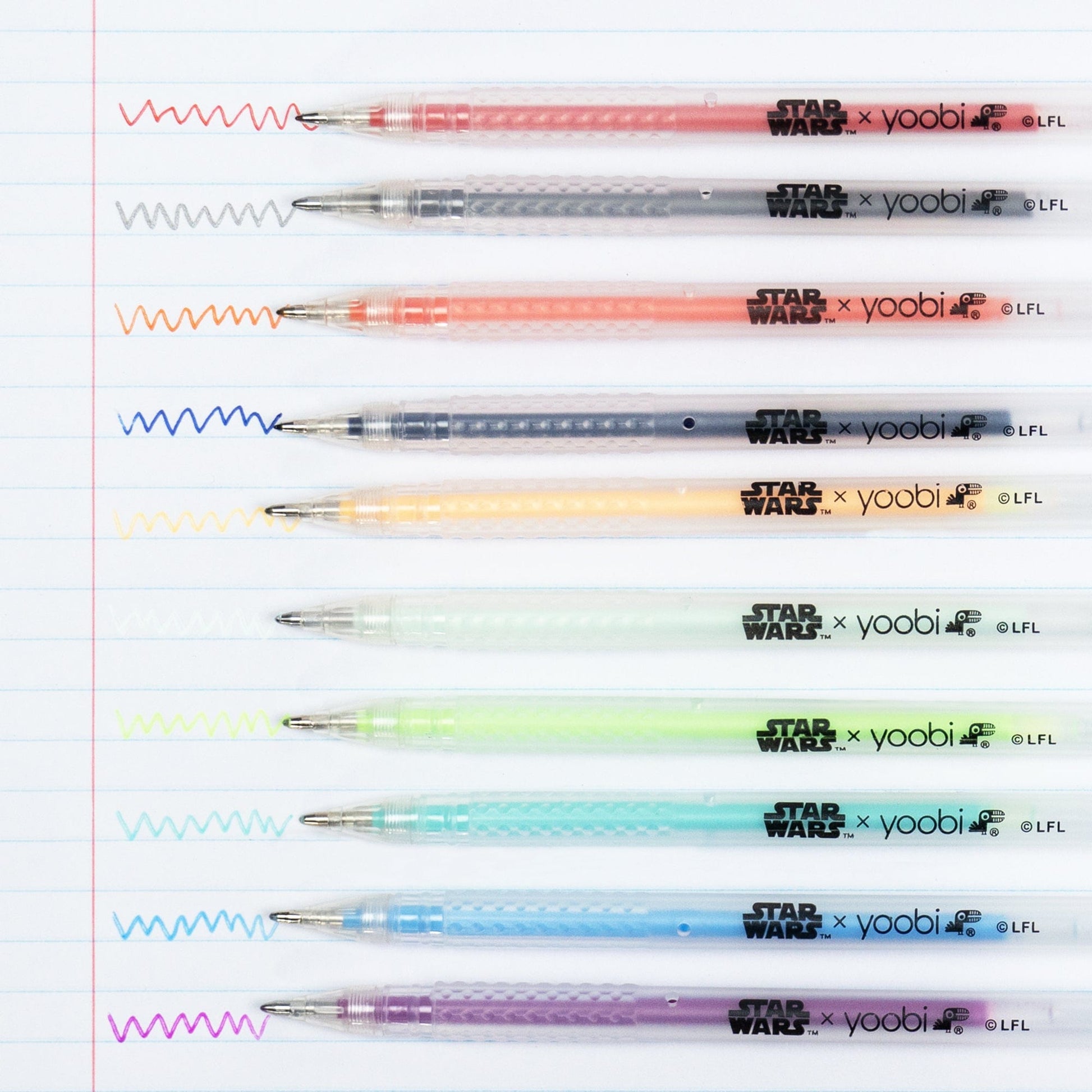- Ace Your Test in Style: Kick up your pencil case with this 10-pack of Star Wars gel pens; the pack has all the colors you’ll need, such as red, black, blue, orange, turquoise and purple