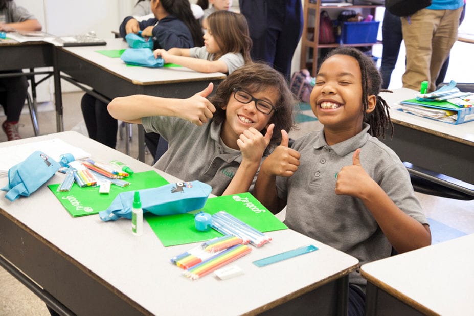 Walking into a classroom with a Yoobi Classroom Pack is the school supply version of Santa Claus delivering a giant sack of presents to a group of kids on Christmas Day. The thrill on kids’ faces is absolutely astonishing – contagious even. No matter how many times we walk into a classroom, we STILL get excited to have the students tear open their box and see what lies inside. When the contents of the box are finally revealed, the screams of joy and the beaming smiles are electrifying – they absolutely light up the classroom.